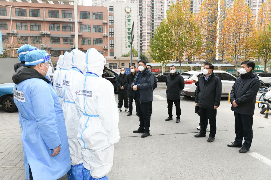 11月27日上午,集團(tuán)黨委書記、董事長、總經(jīng)理牟曉巖一行到天橋區(qū)督導(dǎo)檢查集團(tuán)下沉社區(qū)志愿服務(wù)工作并看望慰問第二批下沉社區(qū)抗疫志愿服務(wù)隊(duì)員。集團(tuán)紀(jì)委書記王維鋒,工會(huì)主席、總經(jīng)濟(jì)師朱相波,副總經(jīng)理、安全總監(jiān)馬烽參加督導(dǎo)慰問。